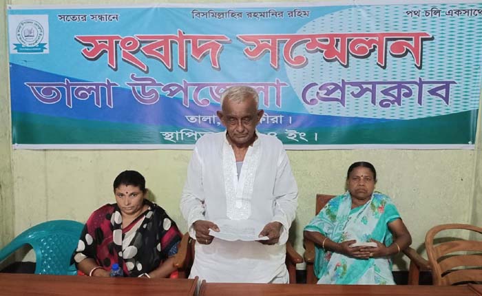 তালায় হামলা ও হুমকির প্রতিবাদে জীবনের নিরাপত্তা চেয়ে তুষার কান্তি হরির সংবাদ সম্মেলন